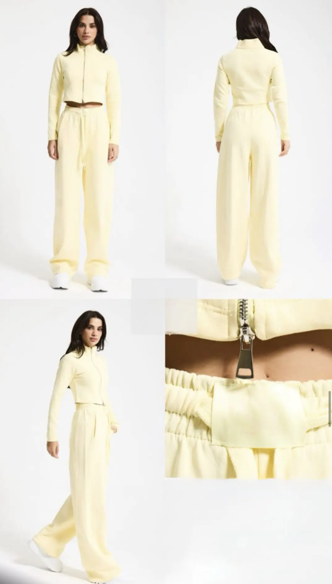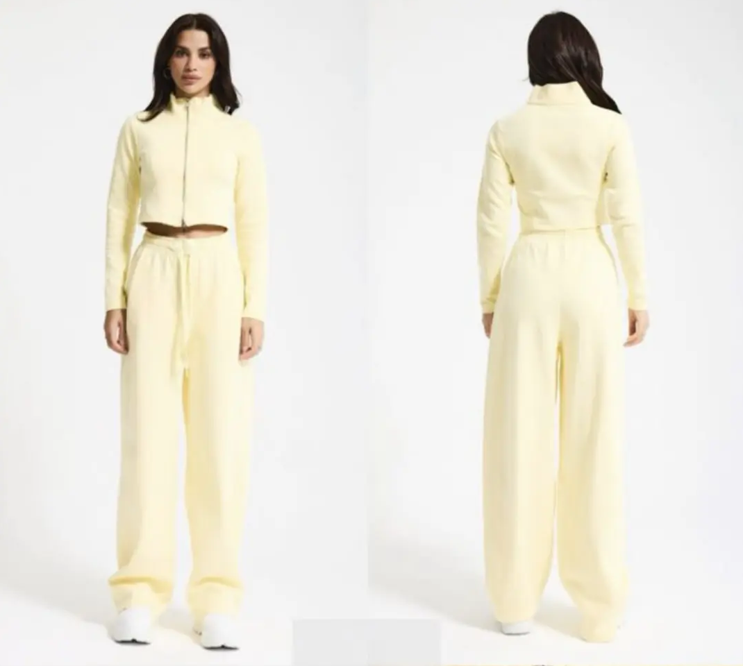 Σετ φόρμας απο 100% βαμβάκι, σε κίτρινο χρώμα. Ψηλόμεση παντελόνα με κορδόνι στη μέση και ζακετάκι με φερμουάρ. Άνετη και στυλάτη.