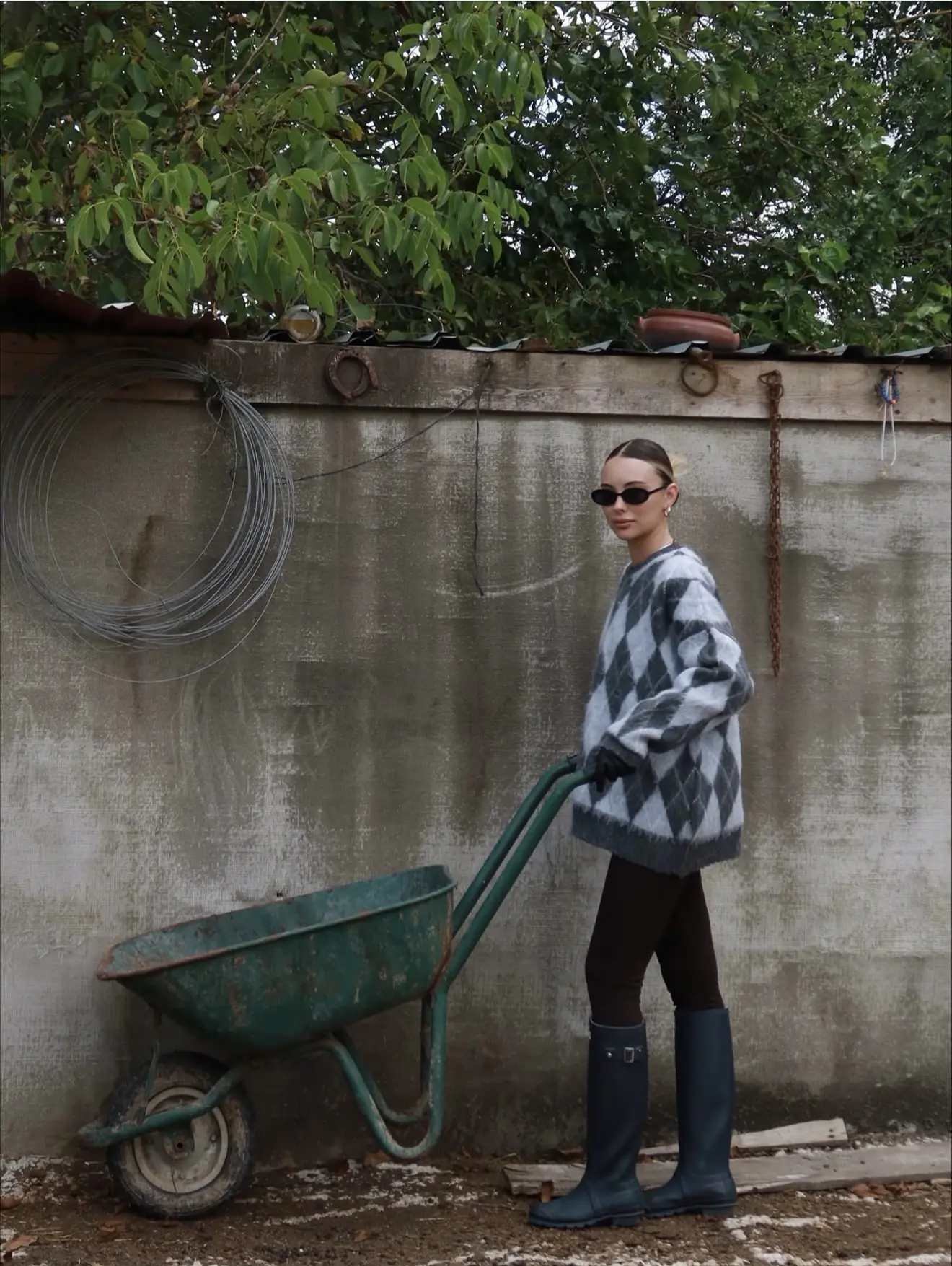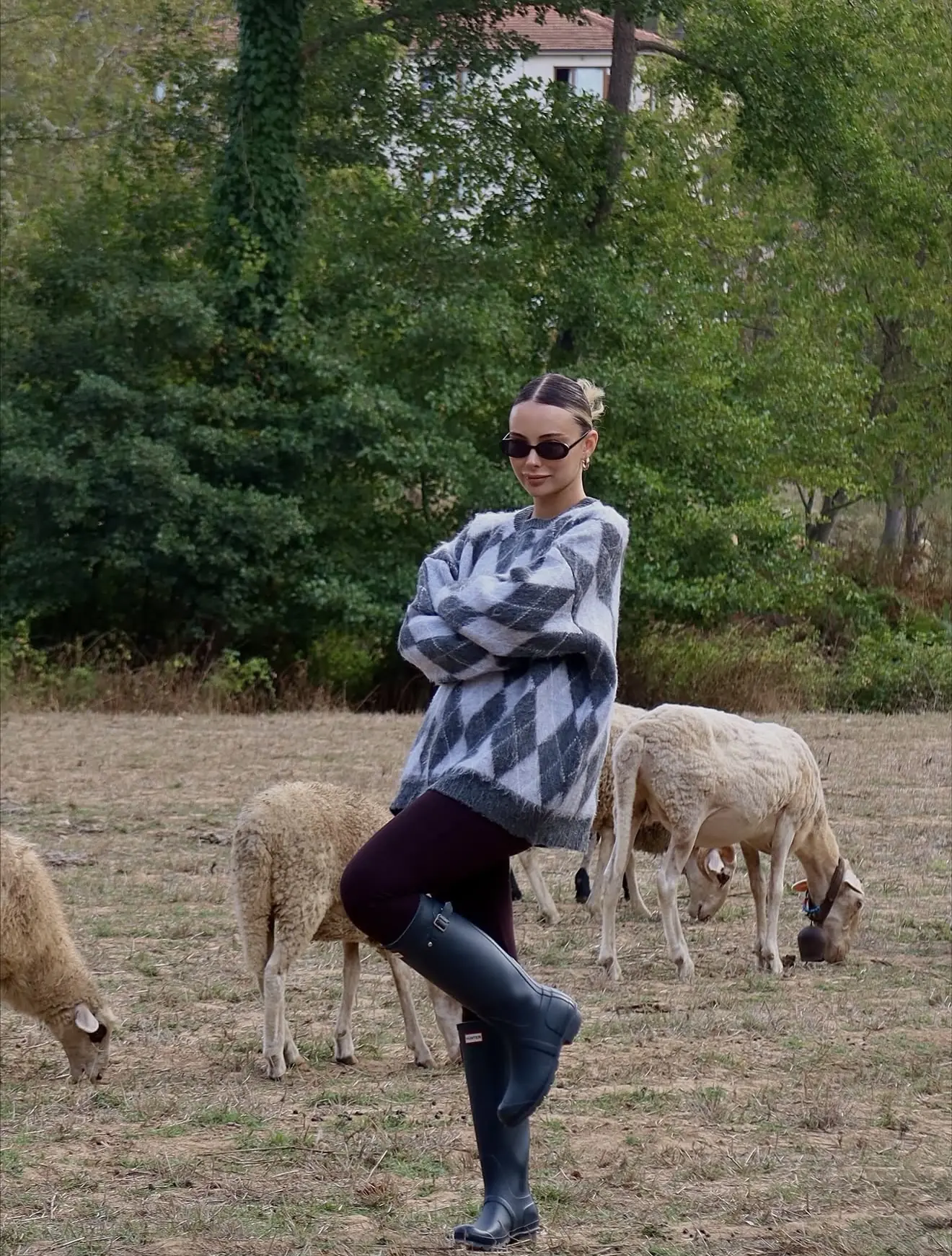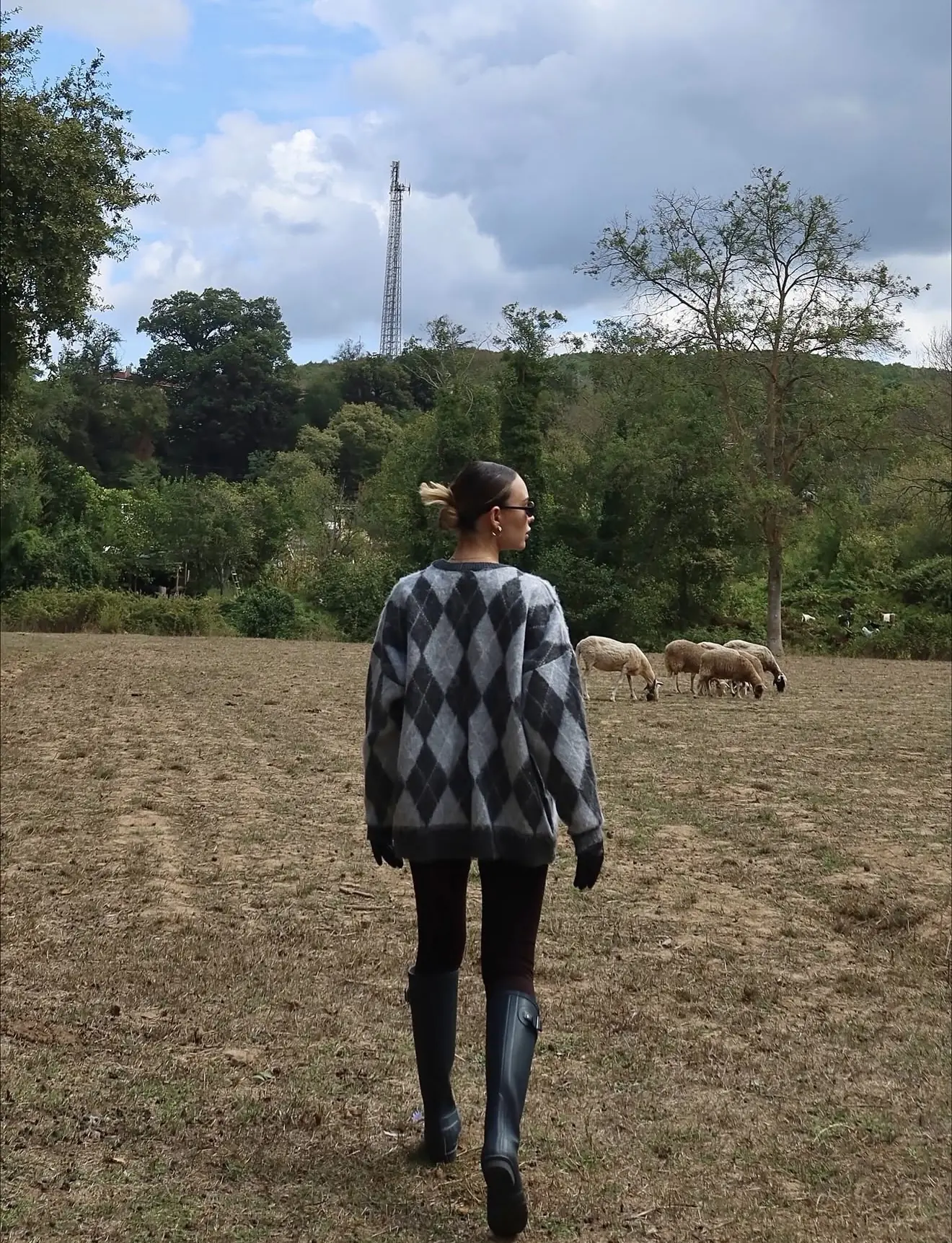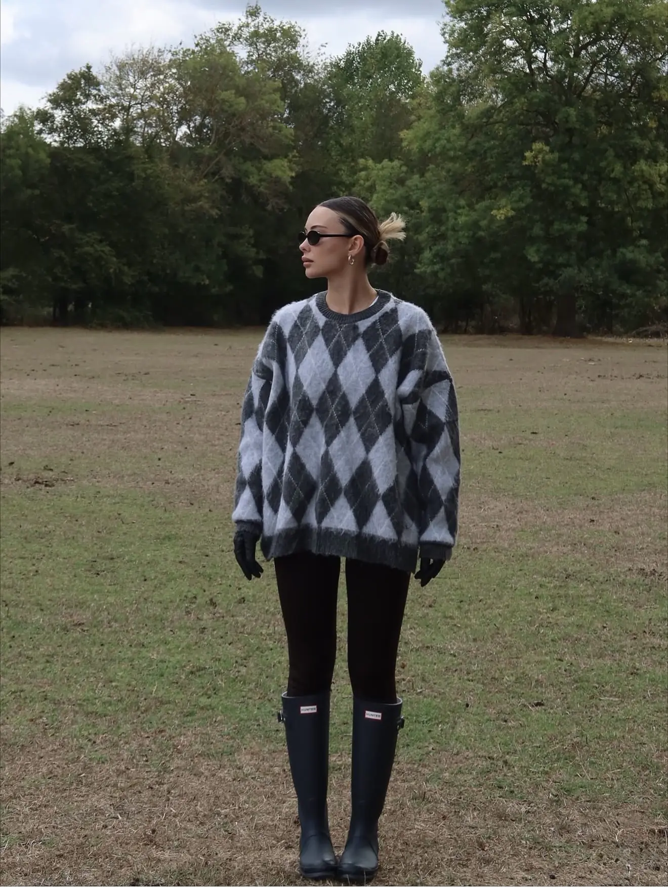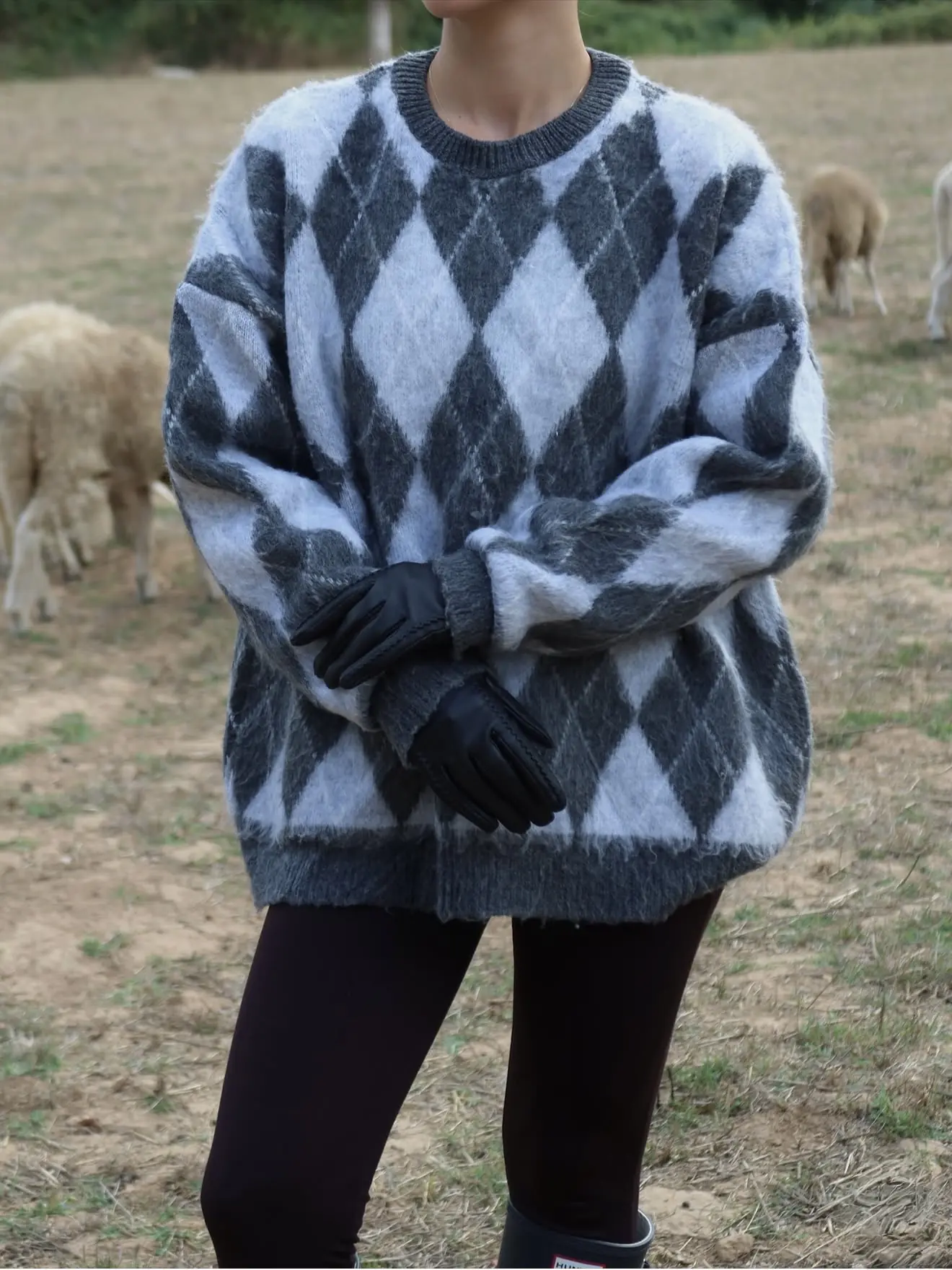 Μάλλινη μπλούζα με ρομβους σε γκρι απόχρωση. Πολύ ζεστή και άνετη.