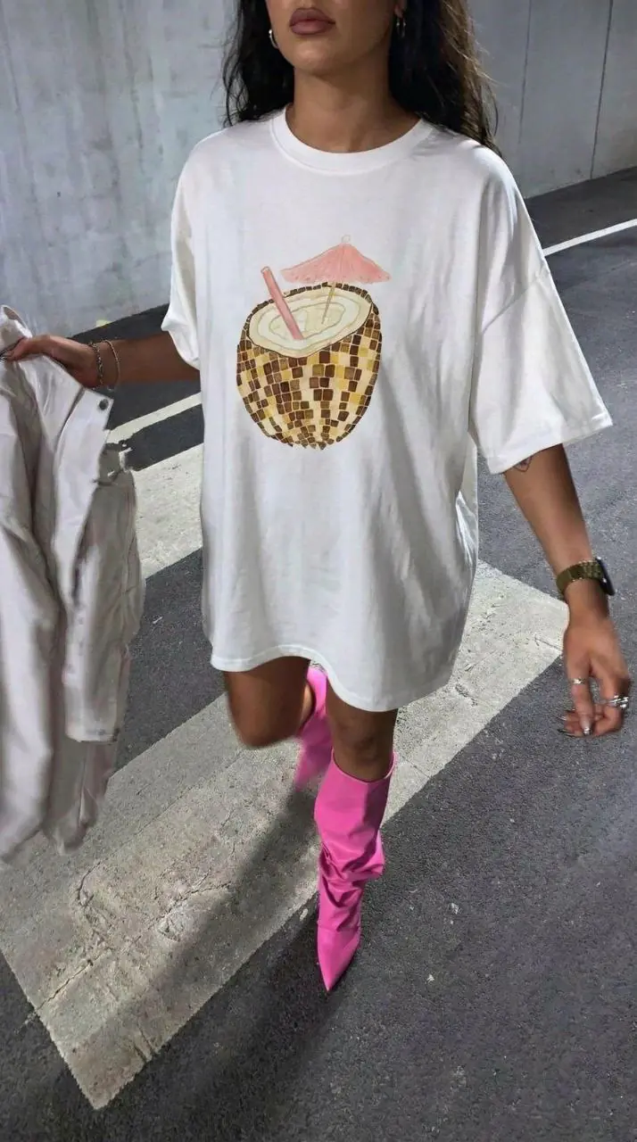 Oversized t-shirt με στάμπα ανανά.