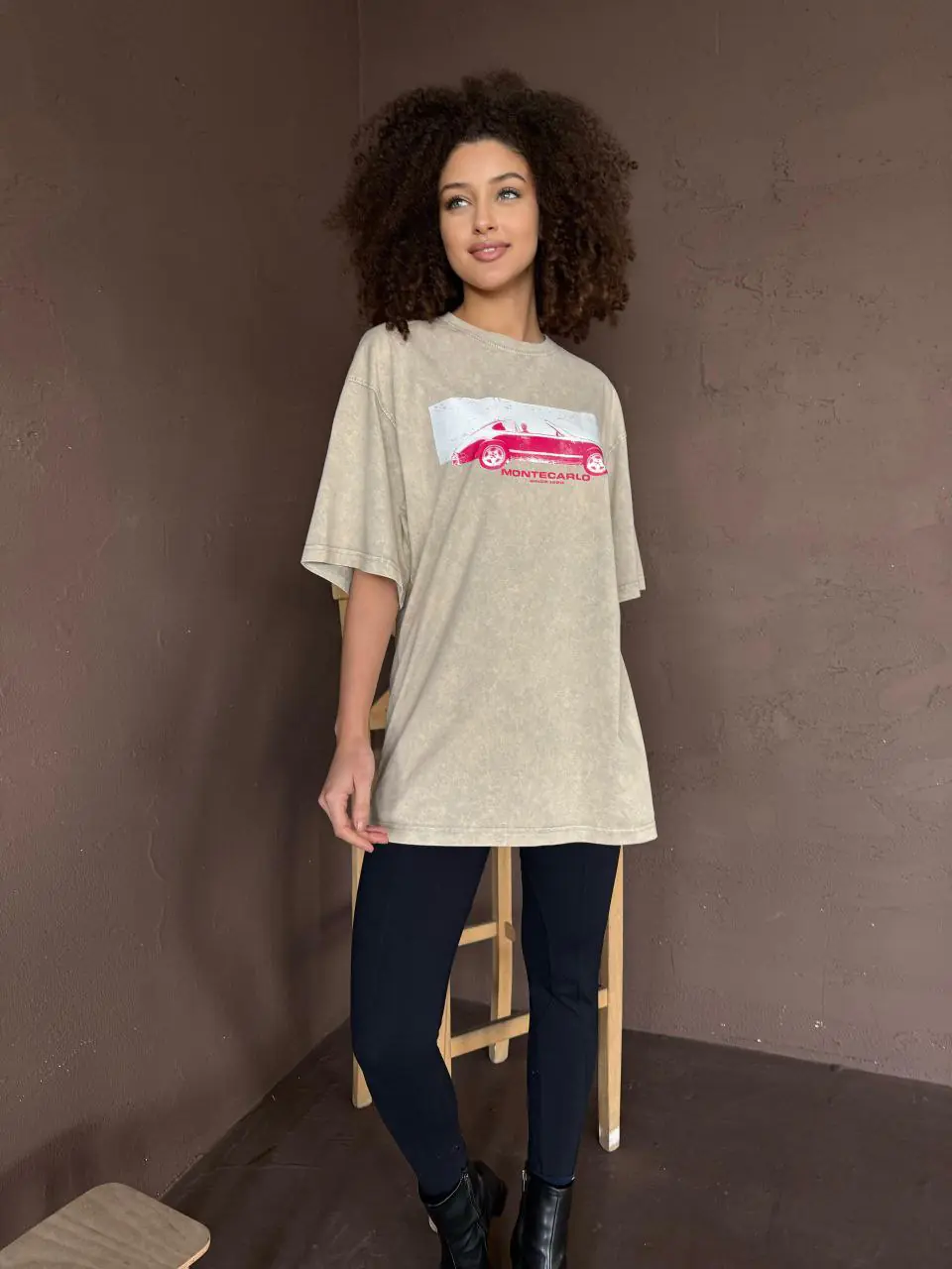 Oversized t-shirt, με λογότυπο vintage αυτοκίνητο. Onesize, φαρδύ