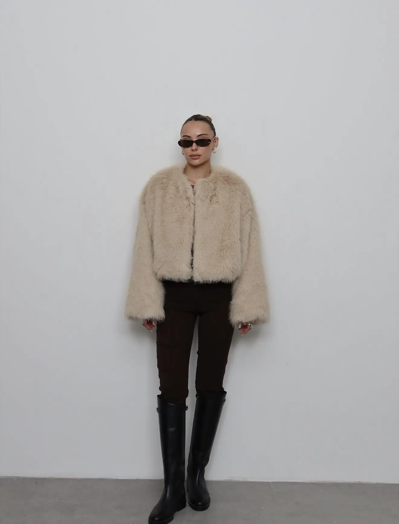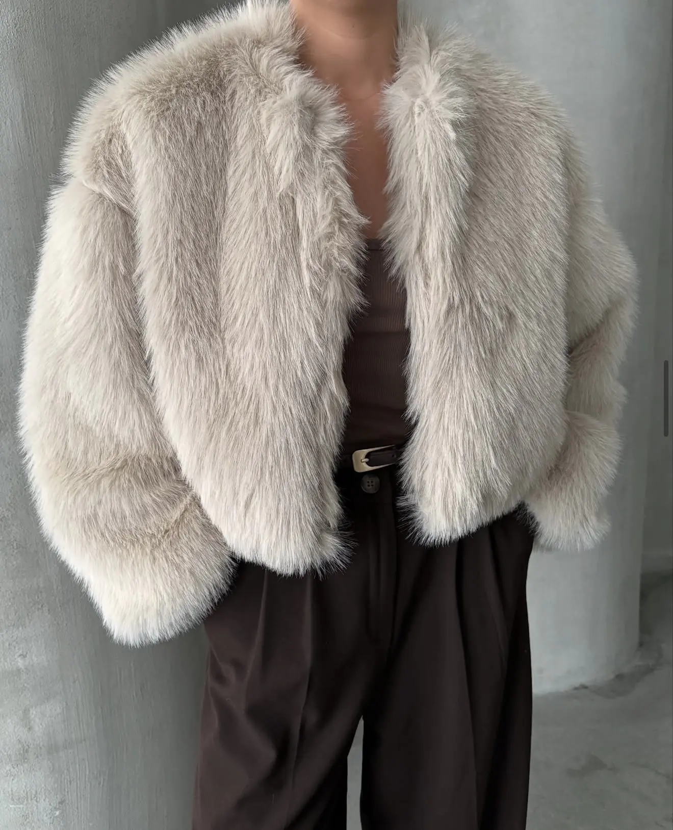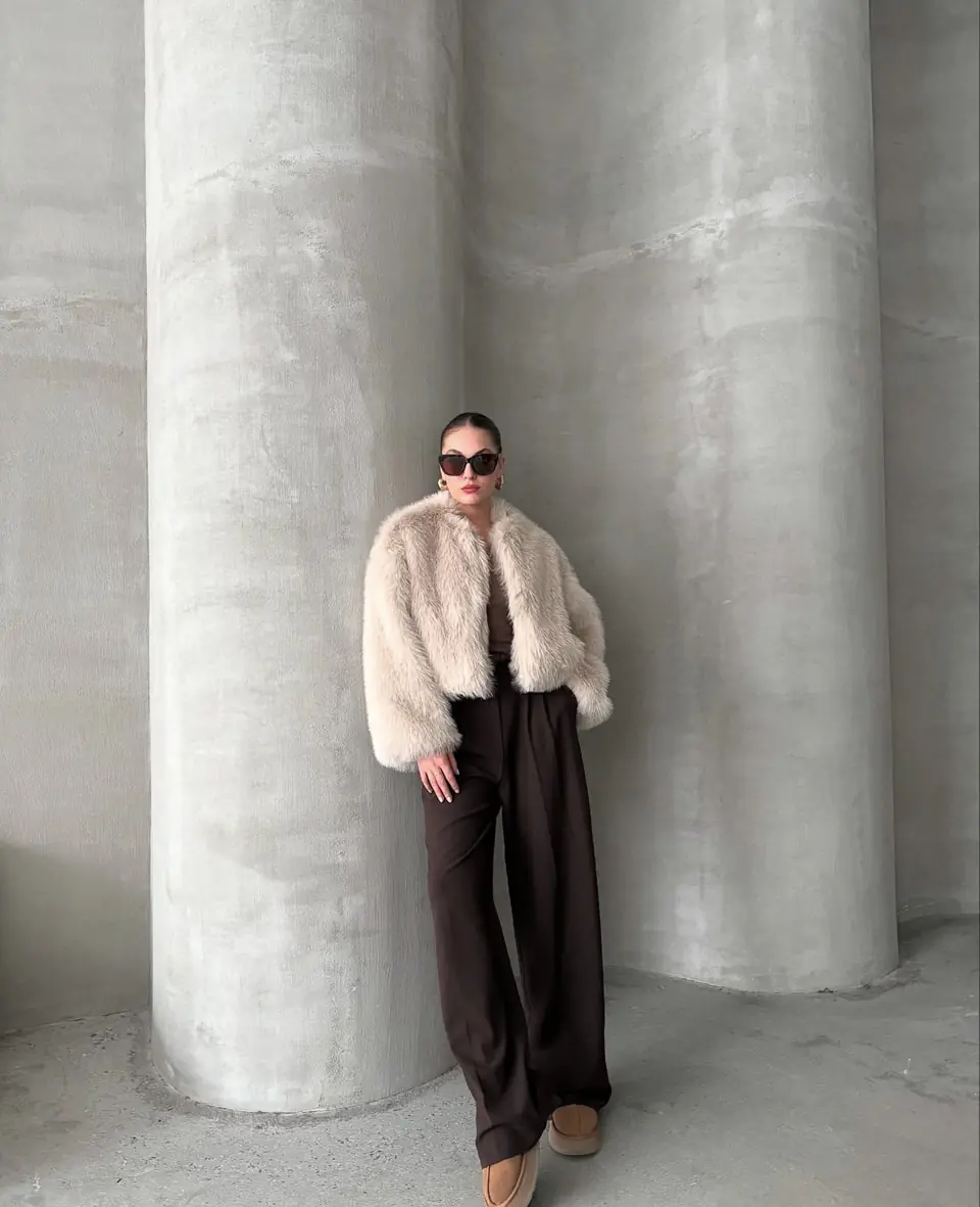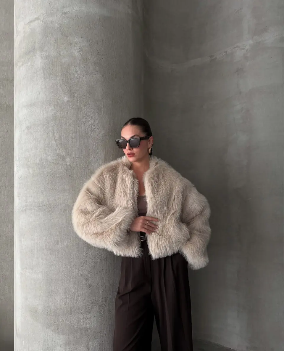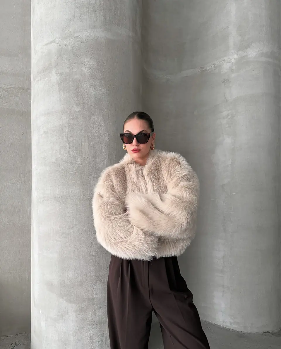 Γούνα μπεζ συνθετική. Είναι onesize και αρκέτα άνετη. Έχει τσέπες με αποτέλεσμα να γίνεται πιο casual.
