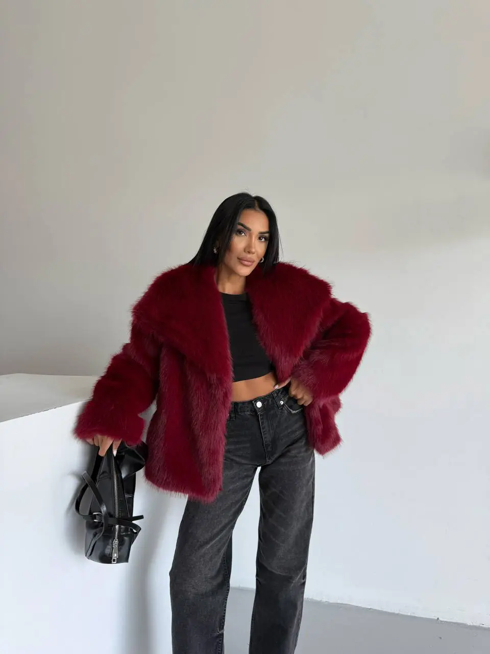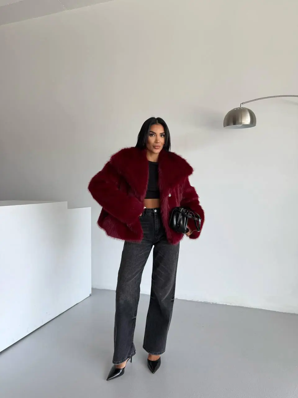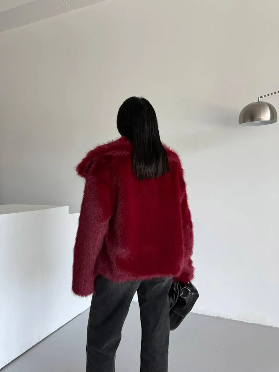 Γούνα μπορντό συνθετική. Πολύ ζεστή. Υπέροχη για κάθε εμφάνιση, από το πρωί ως το βράδυ.