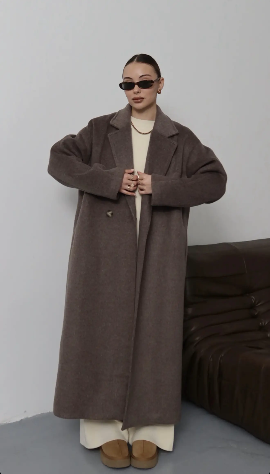 Μάλλινο παλτο σε καφε αποχρώσεις, πολυ ζεστό και μαλακό. Στυλάτη και ζεστή όλη μέρα.