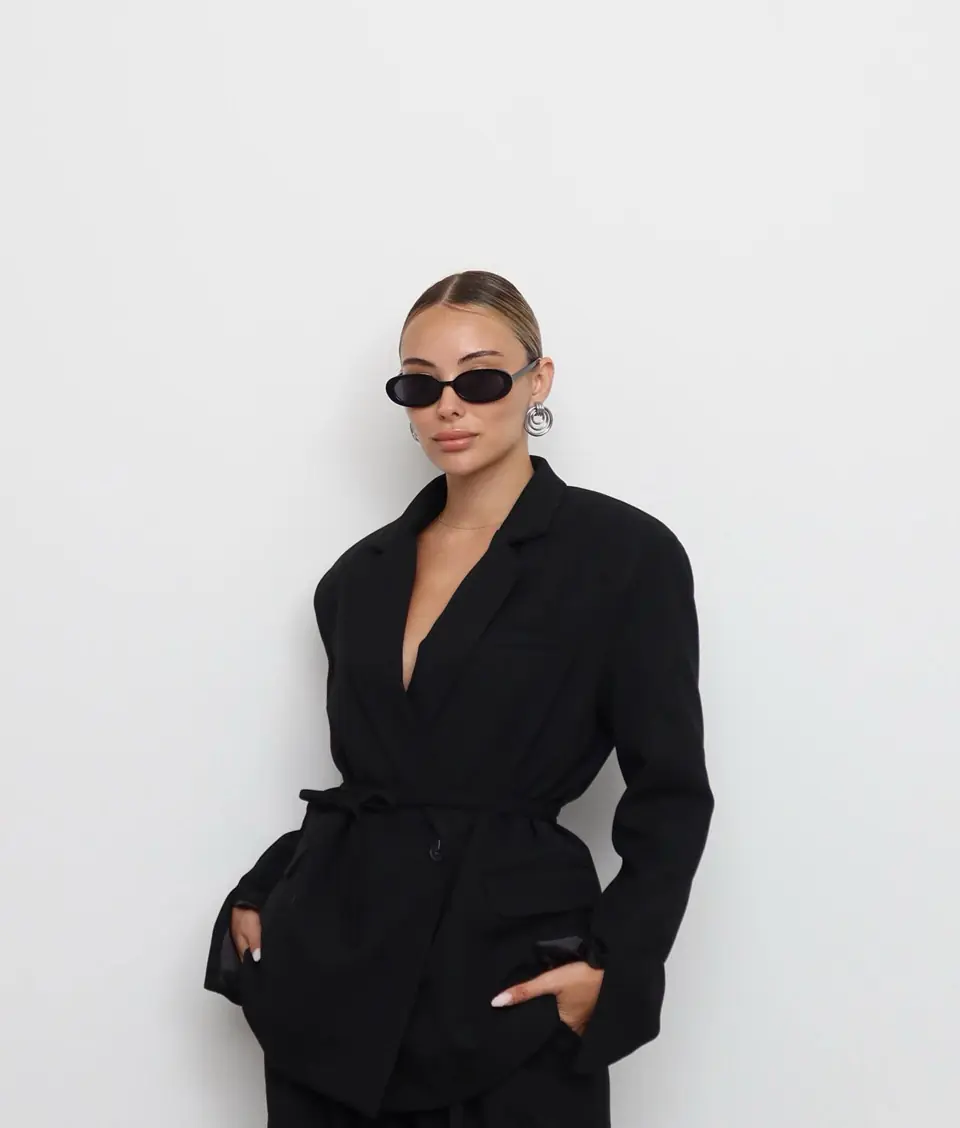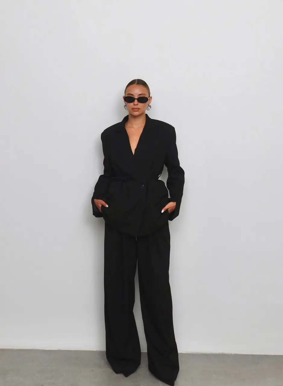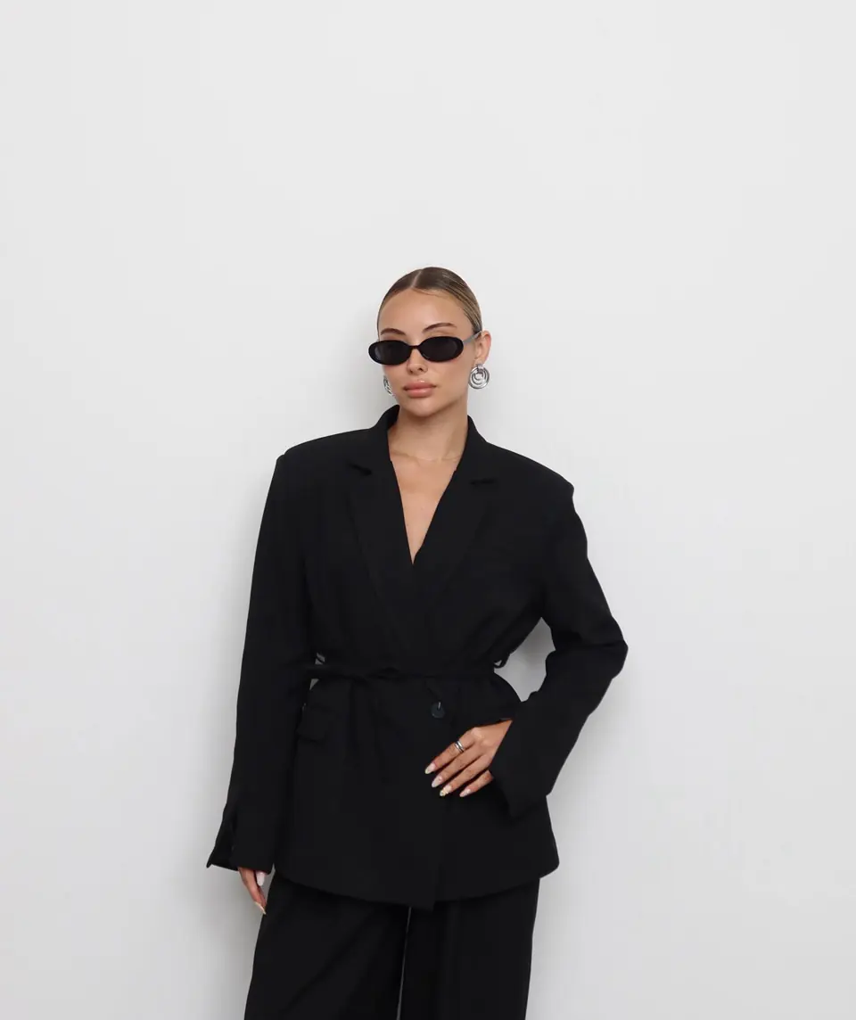 Σακάκι μαυρο με βατες και ζωνακι στη μεση απο 100%βαμβακι