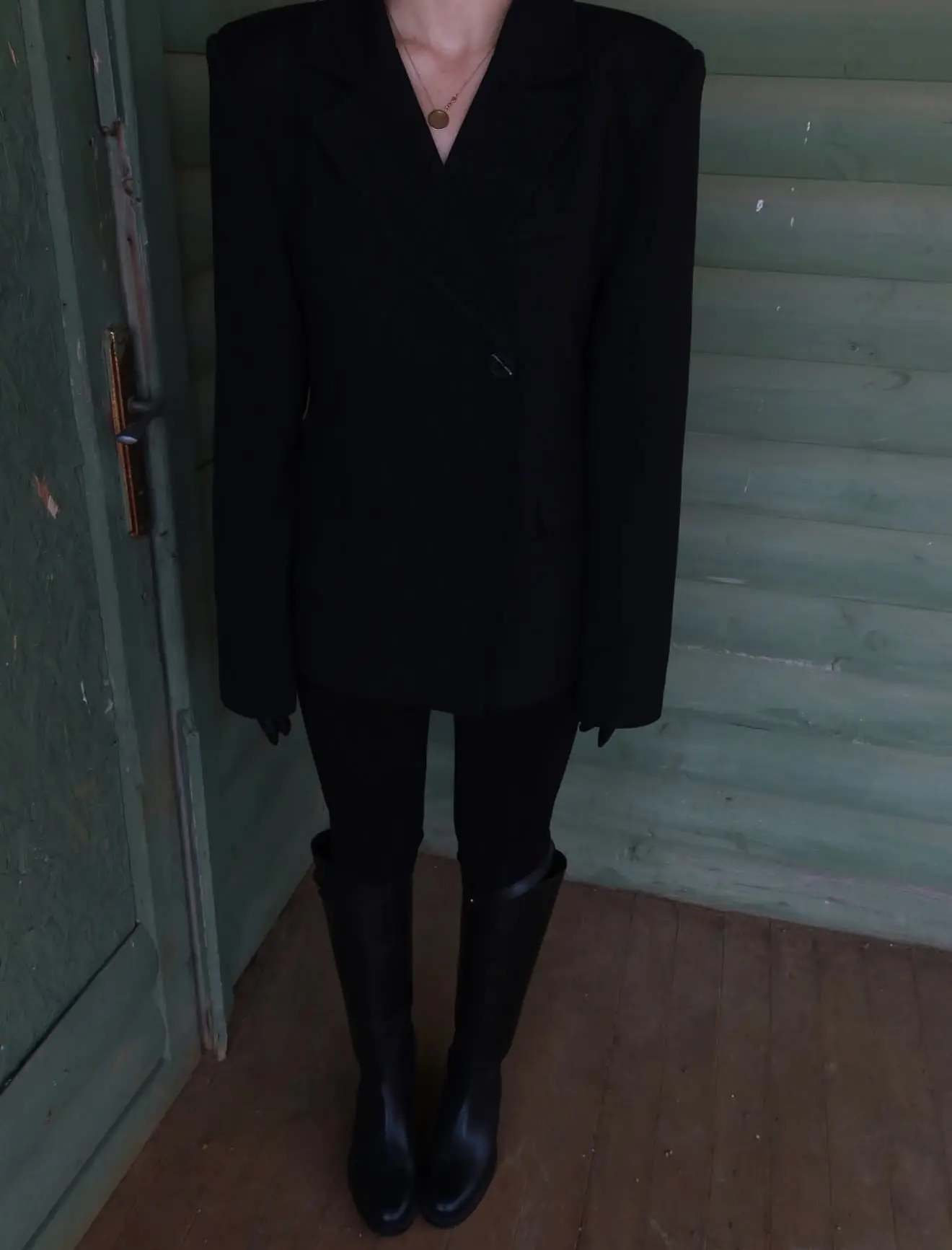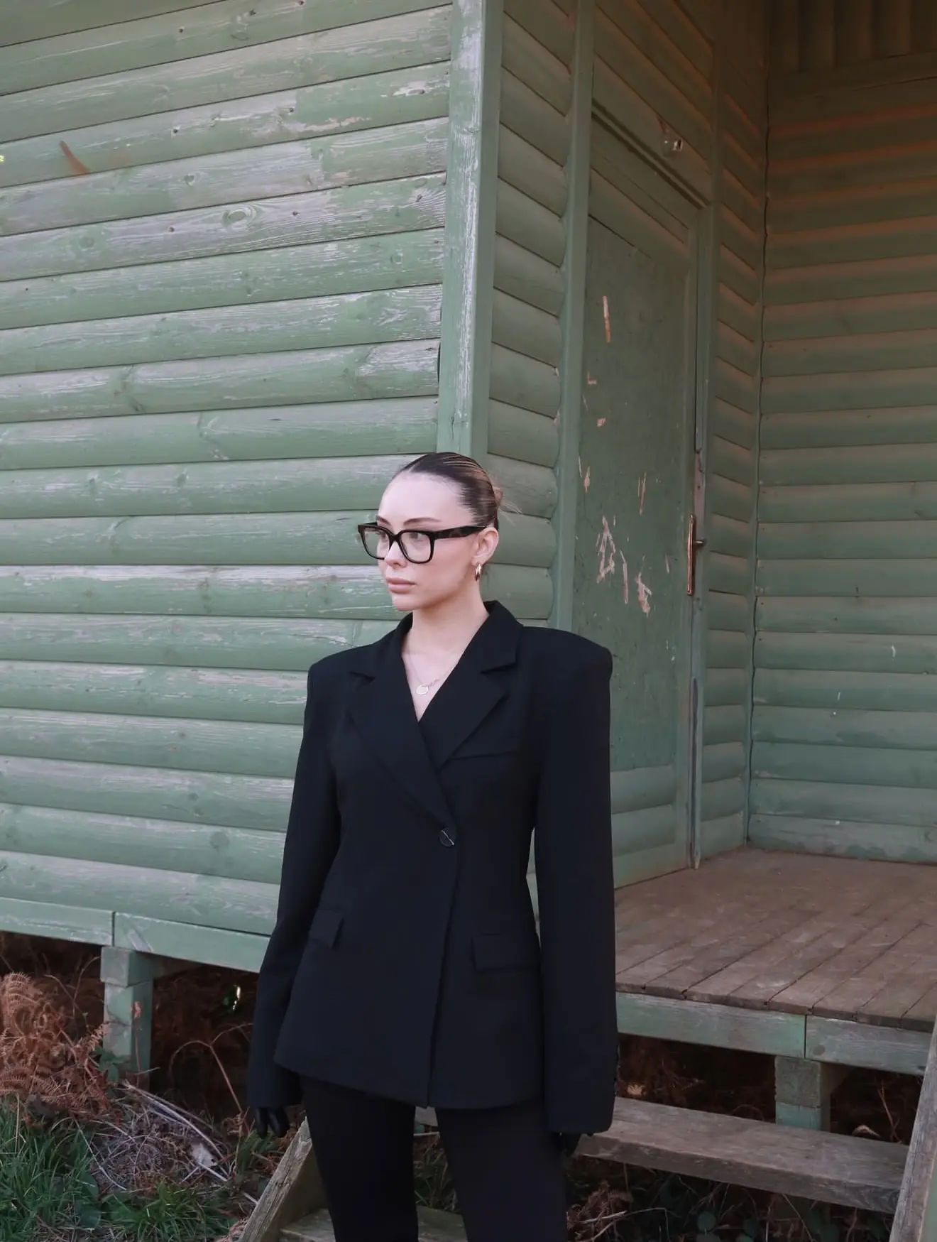 Σακάκι μεσάτο με έντονες βάτες. Τονίζει τη μέση και κολακεύει το σώμα.