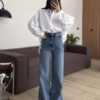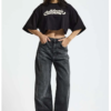 Ψηλόμεσο τζιν παντελόνι, σε γκρι απόχρωση ξεβαμμένο, με γυριστά μπατζάκια.