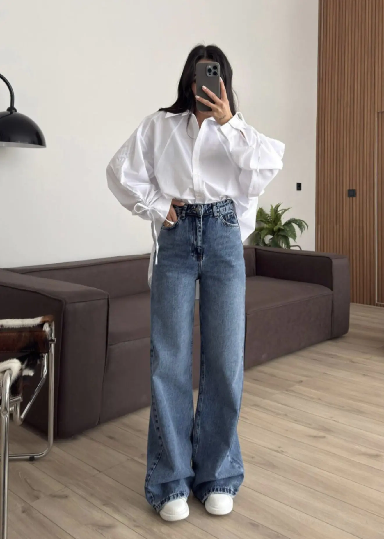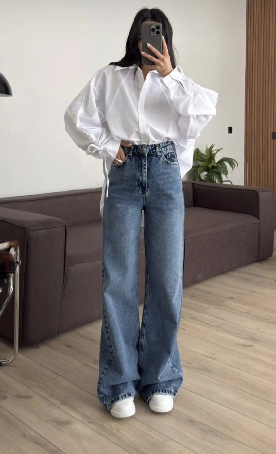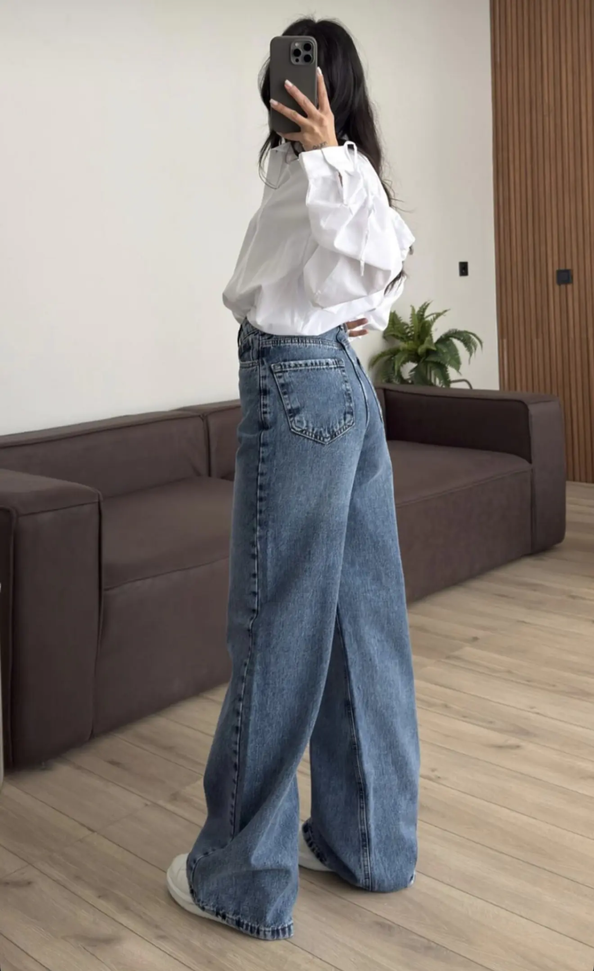 Ψηλόμεσο τζιν παντελόνι σε φαρδιά γραμμή. 100% βαμβάκι.